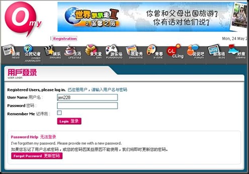 Existing user please login, new user please click “Registration” link to register a new account with omy: